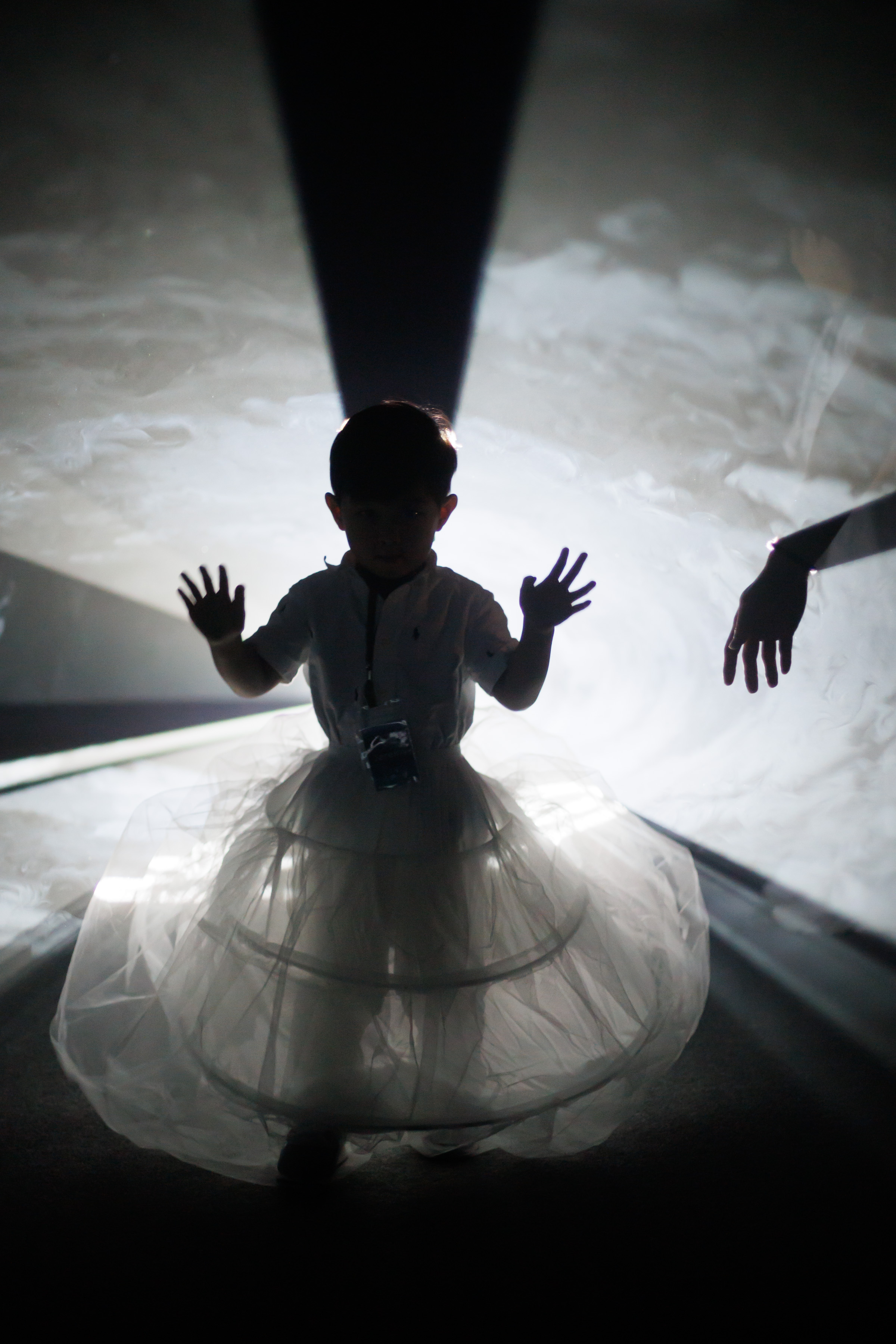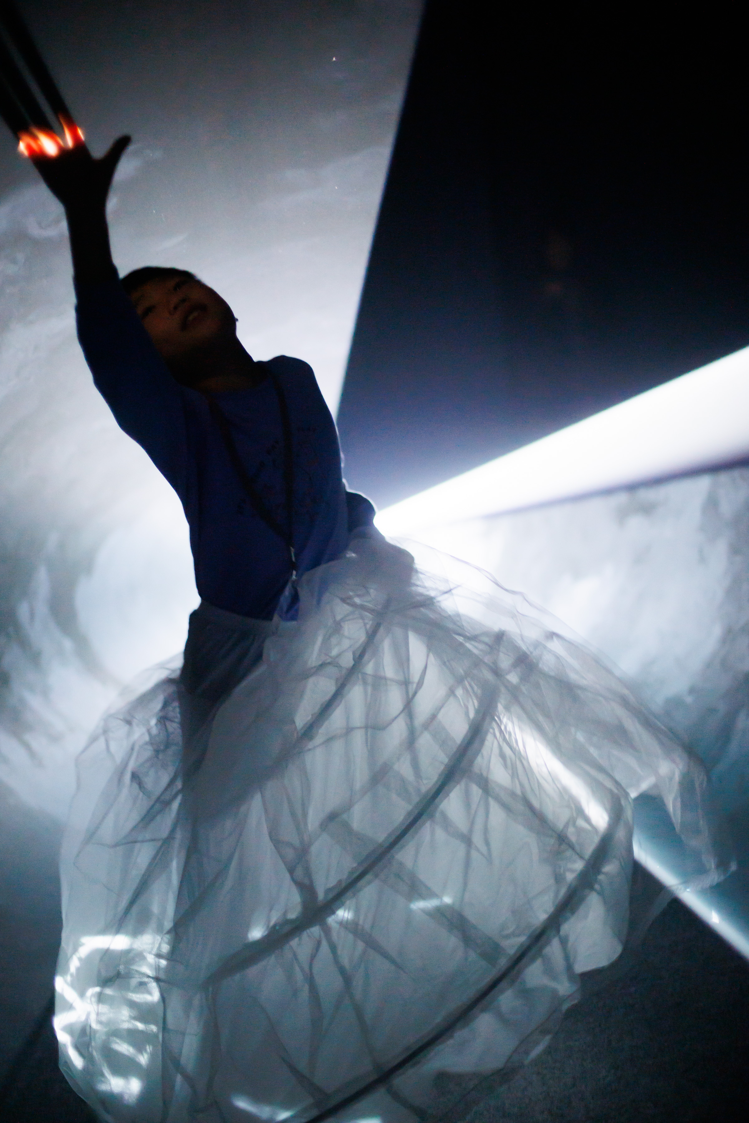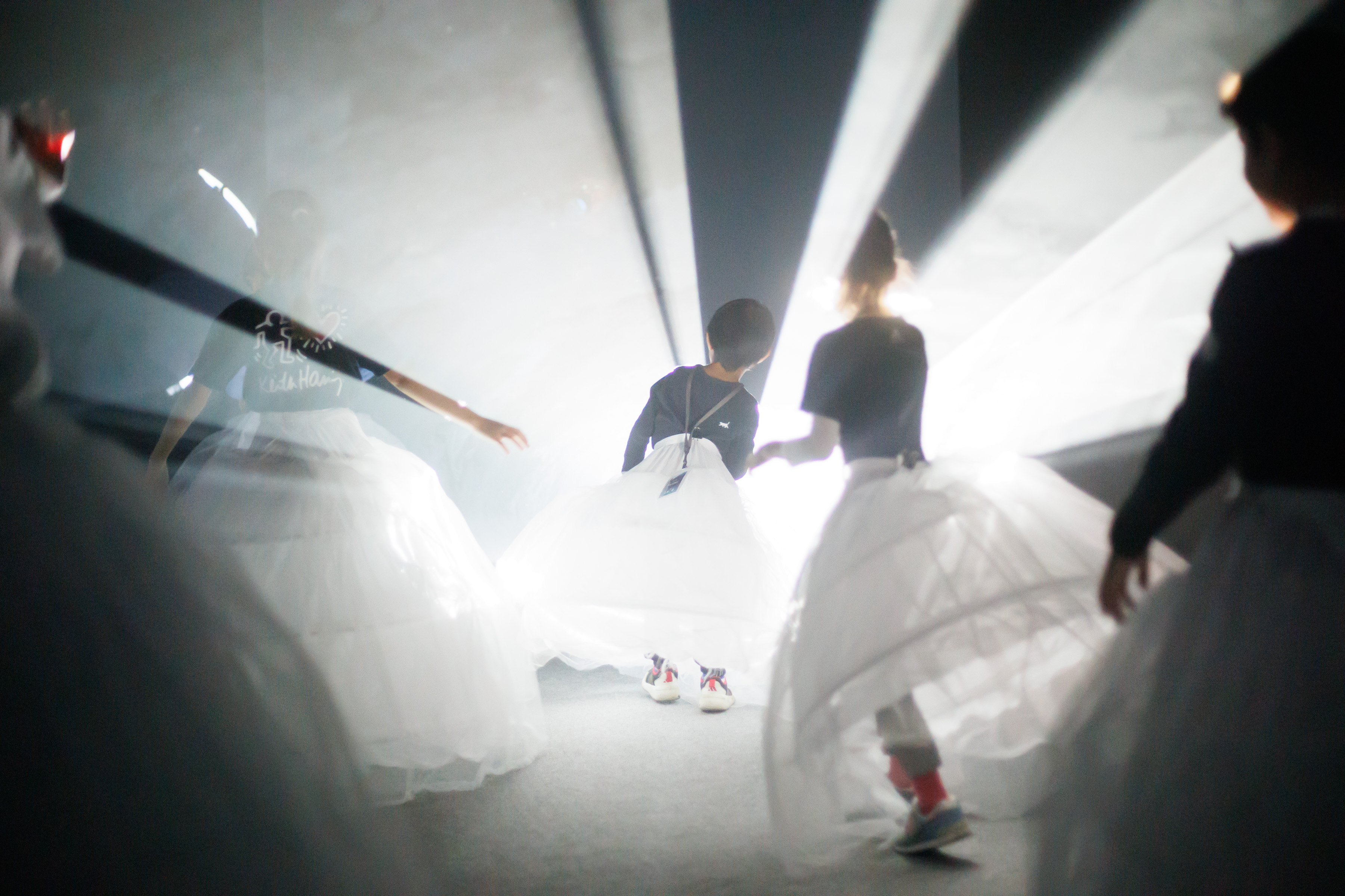 ○ 道具體驗|每組將提供一件白色澎紗裙(僅供活動使用,無法攜回),藉由服裝的輕盈飄動,體驗光與空間的靈動變化。