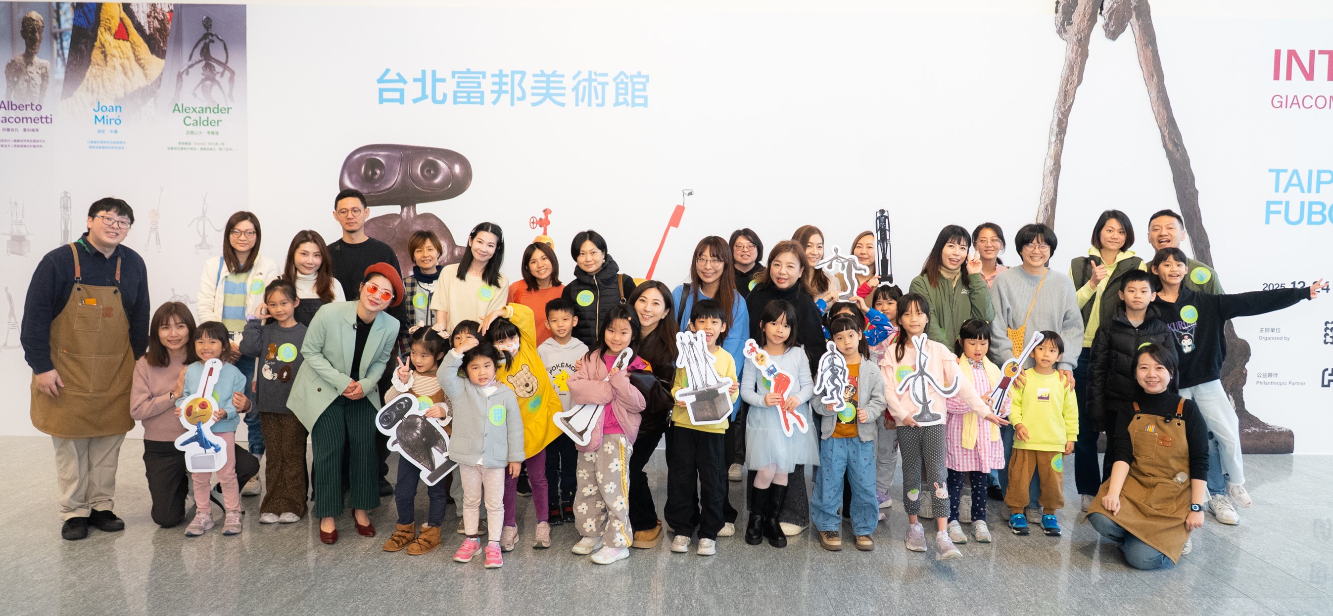 本場親子互動戲劇導覽,特別邀請擅長兒童戲劇的「陪你長大工作室劇團」,把美術館變成一座劇場,為孩子設計一場結合藝術、戲劇與創作的奇妙旅程。透過三個主題關卡與互動式戲劇引導,帶著親子在富邦美術館,近距離遇見三位充滿想像力的藝術家——賈科梅蒂、米羅、考爾德!