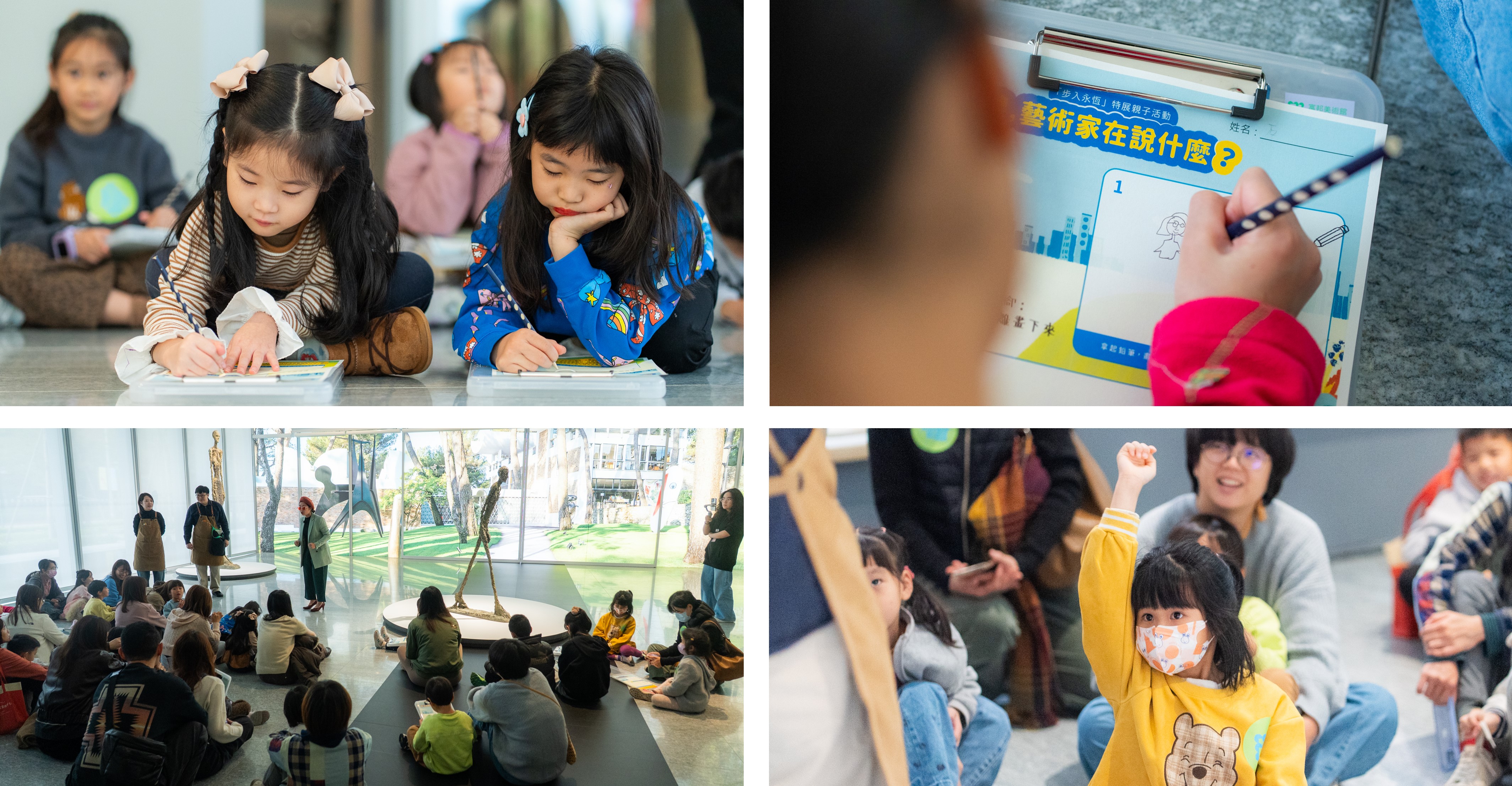 2. 活動內容中已包含部分展間參觀;活動結束後,參與活動之一位成人與一位兒童可憑親子活動參與證明,當日免費再入館參觀「步入永恆:賈科梅蒂、米羅、考爾德」特展一次。